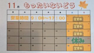 もったいないどう11月の予定のお知らせ